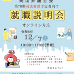 岡山弁護士会では,第78期司法修習予定者を対象とした就職説明会を下記の要領で実施します。岡山での就職をお考えの修習予定者は是非ご参加下さい。